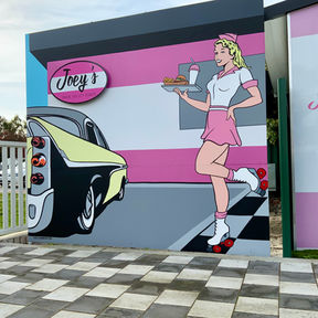 Cale Hummerston is a Perth-based mural artist, designer, and traditional sign-painter whose work reimagines the past with a modern twist, using mid-20th Century visual styles to ignite popular culture. Known for his bold, hand painted artworks, Cale creates striking large scale murals across WA, as well as domestic murals and commercial signage. His pieces have been exhibited in Perth and the U.S. and are held in private collections.